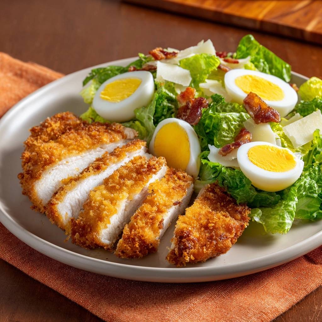 For those who like a bit of heat, add a teaspoon of red pepper flakes to the Panko or a dash of hot sauce to the egg wash. If you want more fiber in your greens, try a mix of Romaine and shredded Brussels sprouts. However, keep the crispy bacon and hard-boiled eggs; they provide the classic fatty richness that makes a Caesar feel like a complete meal.