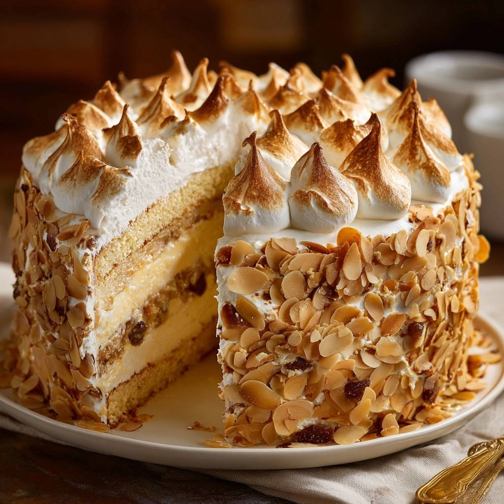 Therefore, you get bakery-quality layers of moist raisin-studded custard over almond-crusted sponge. No more frustration. In addition, the hot sugar syrup cooks the whites fully, locking in structure for that dramatic torch finish.