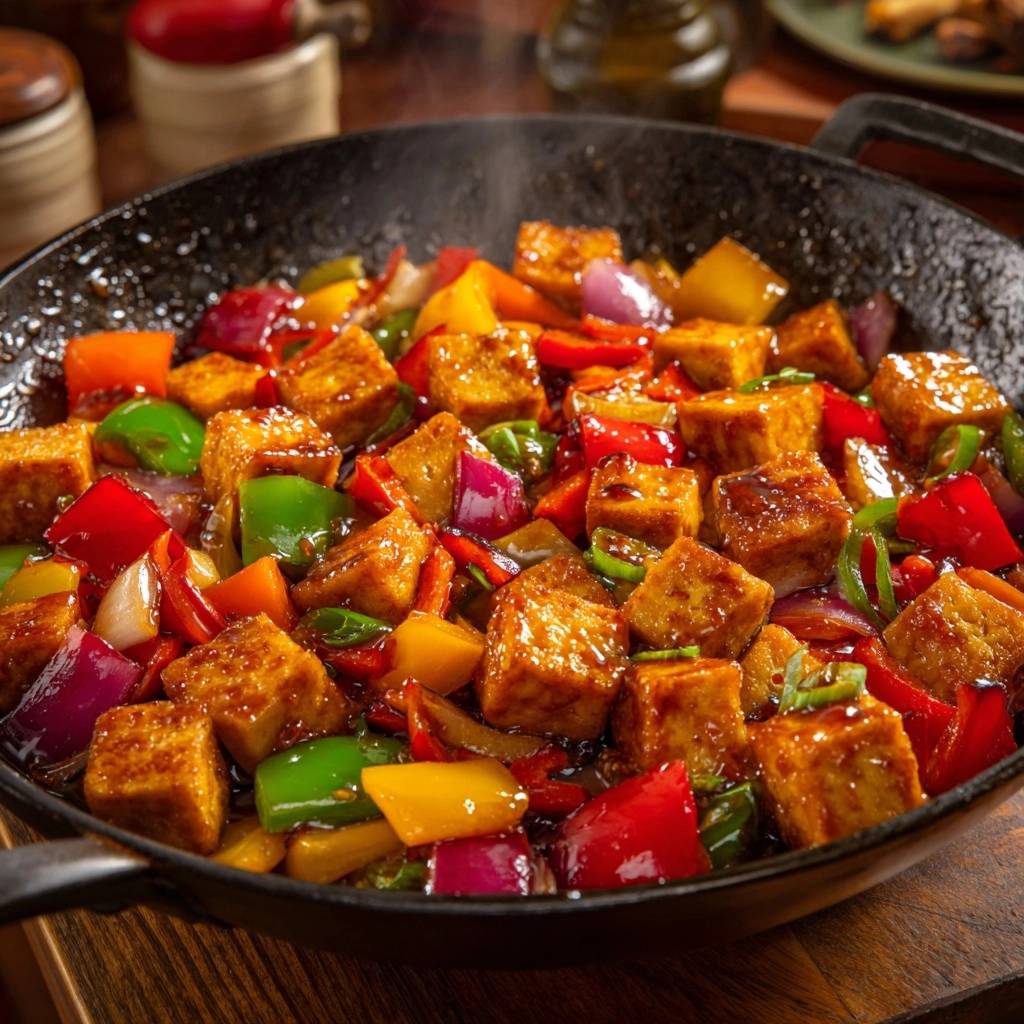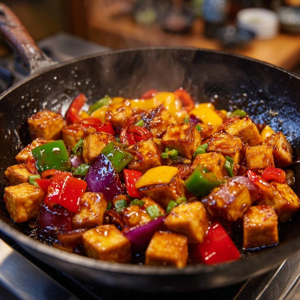Visual check: Tofu should sizzle loudly and brown fast. Peppers brighten before softening. Fix over-thick sauce by adding a splash of water.